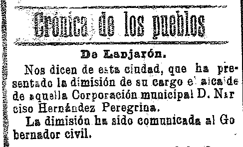 26 de enero de 1910. Dimite el alcalde de Lanjarón D. Narciso