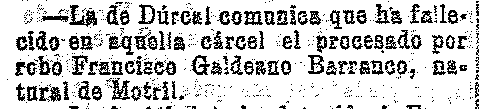 30 de enero de 1910. Preso fallece en la cárcel de Dúrcal