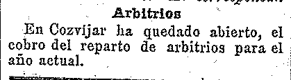 15 de julio de 1910. Arbitrios en Cozvíjar