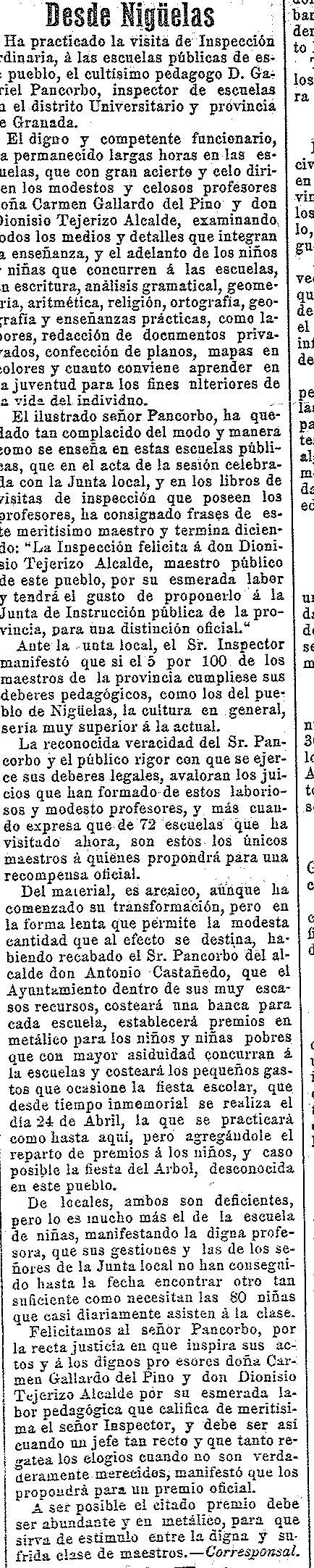 1 de julio de 1910. Inspección de las escuelas de Nigüelas