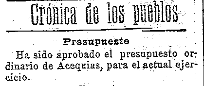 1 de julio de 1910. Presupuesto de Acequias