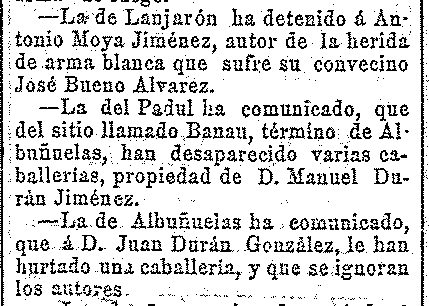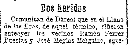 27 de julio de 1910. Pelea y heridos en Dúrcal