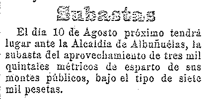 28 de julio de 1910. Subasta del esparto de Albuñuelas