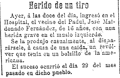 2 de julio de 1910. Herido por un revólver un vecino de Padul