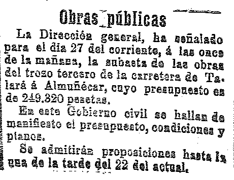 12 de diciembre de 1911. Subasta de obras en la carretera