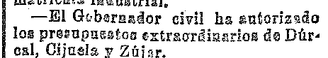 13 de diciembre de 1911. Presupuestos de Dúrcal