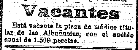 22 de diciembre de 1911. Vacante la plaza de médico de