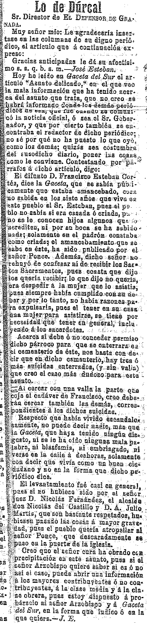 30 de diciembre de 1911. El caso de Dúrcal. El cura Sr. Ponce