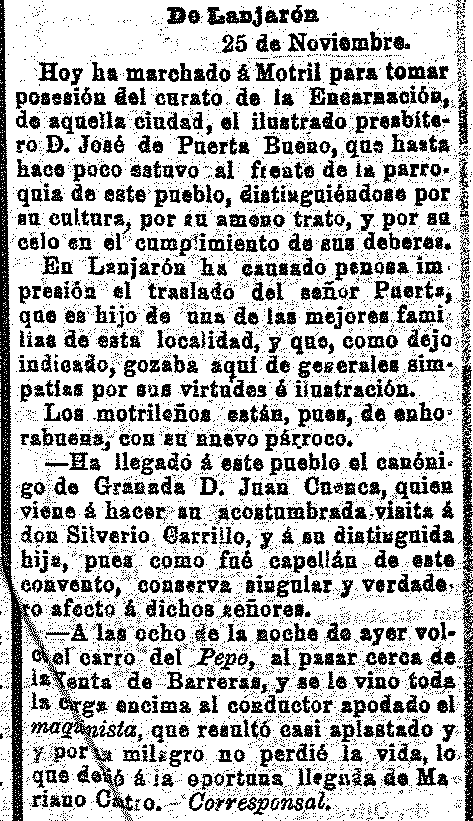3 de diciembre de 1911. Cura nuevo de Lanjarón