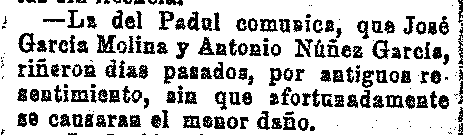 6 de diciembre de 1911. Riña de individuos entre la linde de Padul y Dúrcal