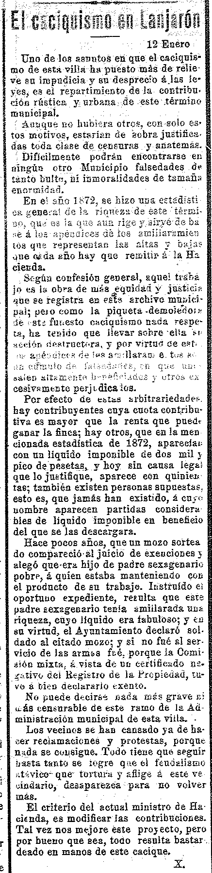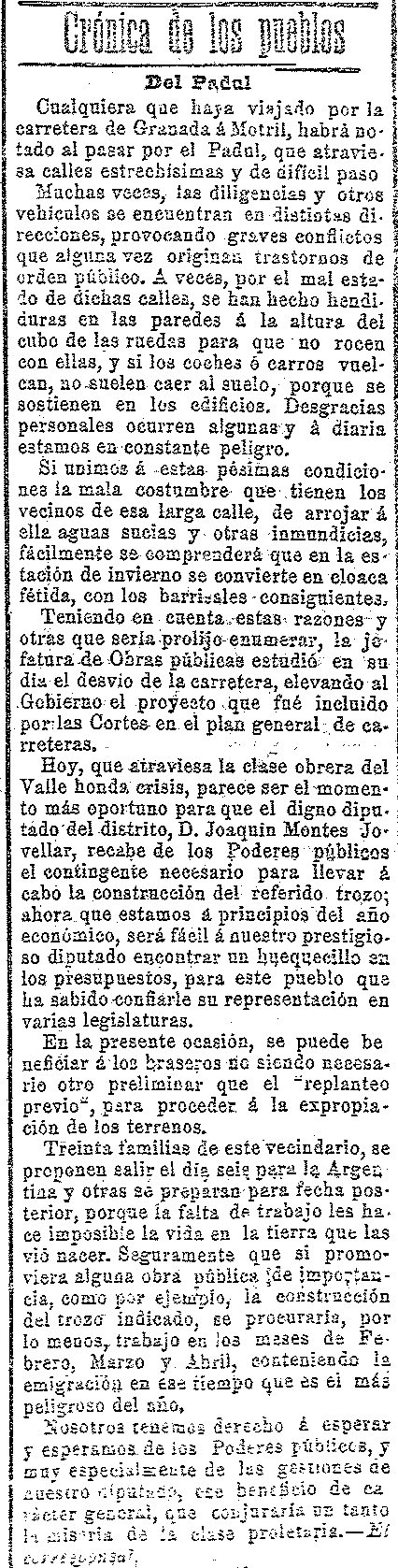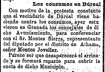 19 de enero de 1911. Protesta en Dúrcal por los consumos