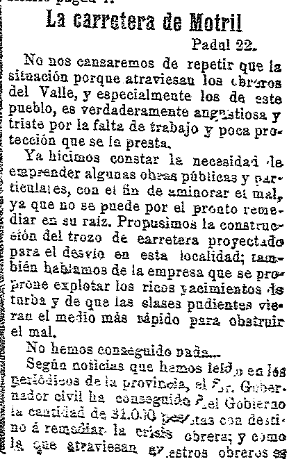 25 de enero de 1911. El arreglo de la carretera a la altura