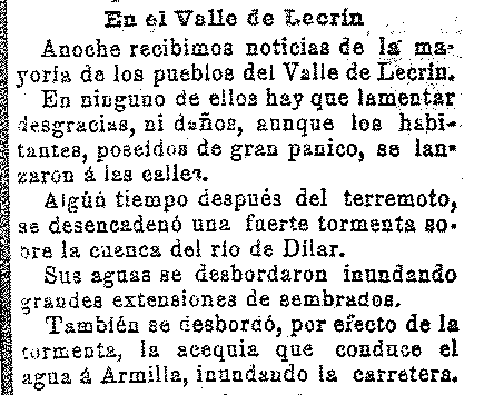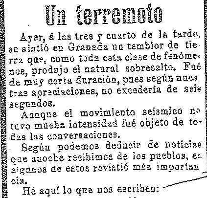 1 de junio de 1911. Terremoto en Granada. Suena en el Valle
