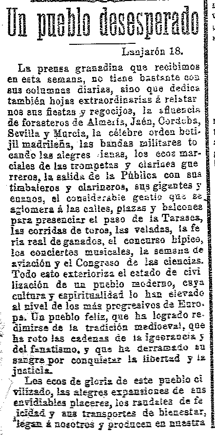 14 de junio de 1911. Lanjarón: Un pueblo desesperado