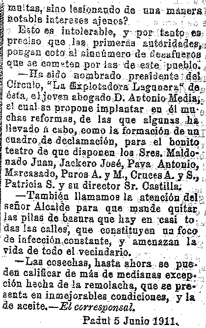 6 de junio de 1911. Desde Padul: Siguen los abusos.