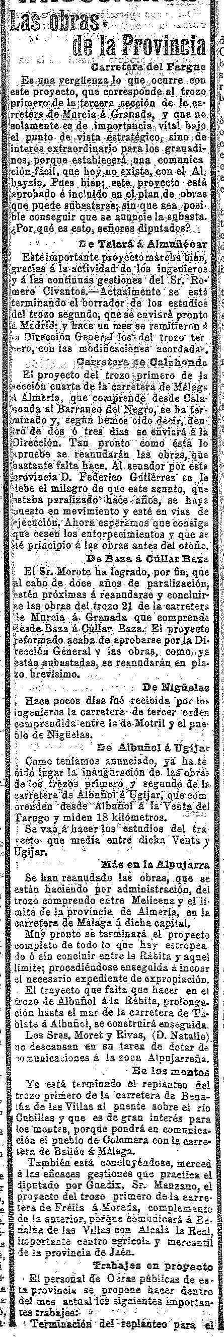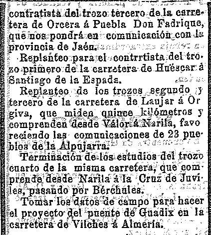 2 de mayo de 1911. Carreteras de la provincia: En el Valle la de Talará a Almuñécar y la de Nigüelas