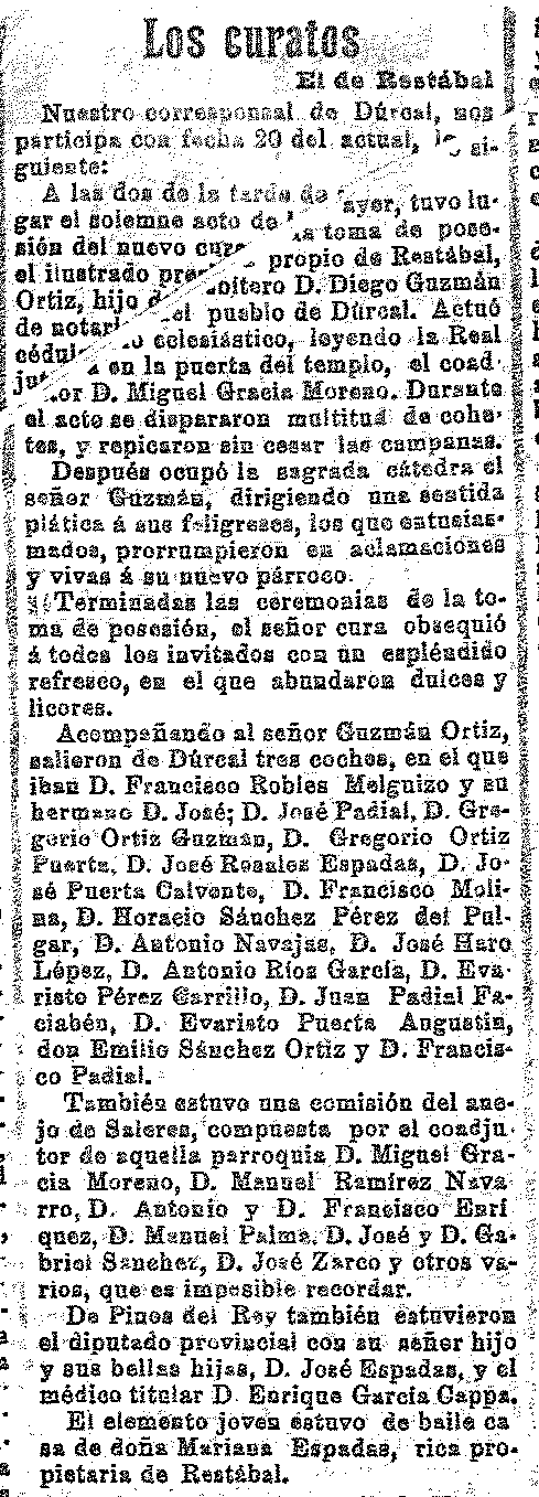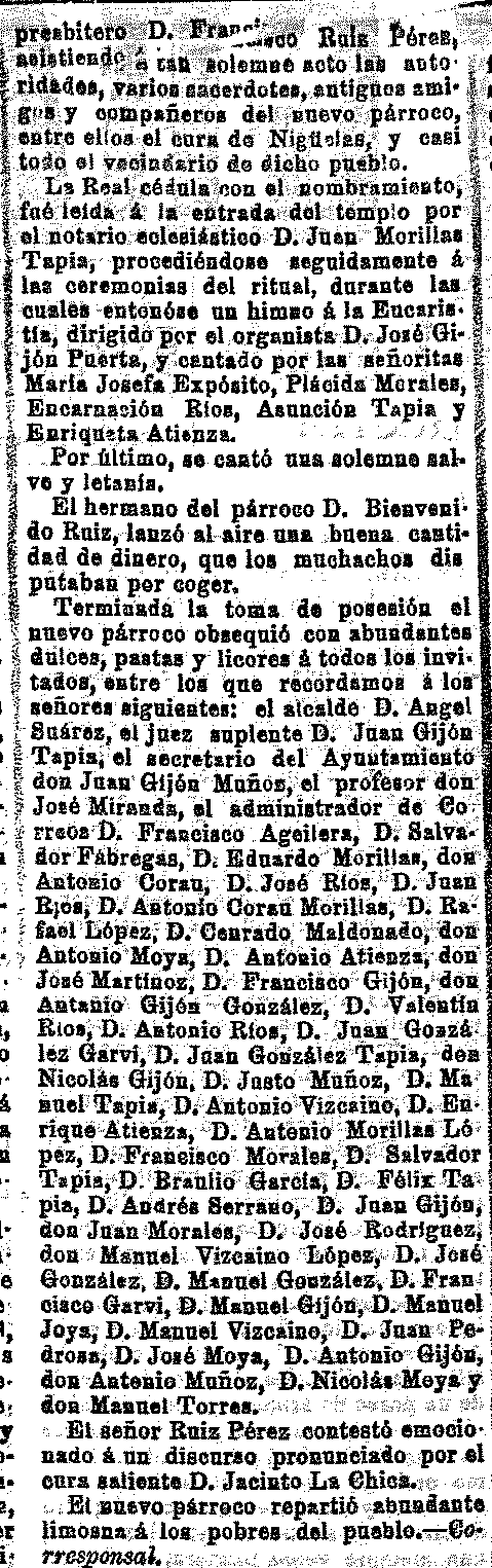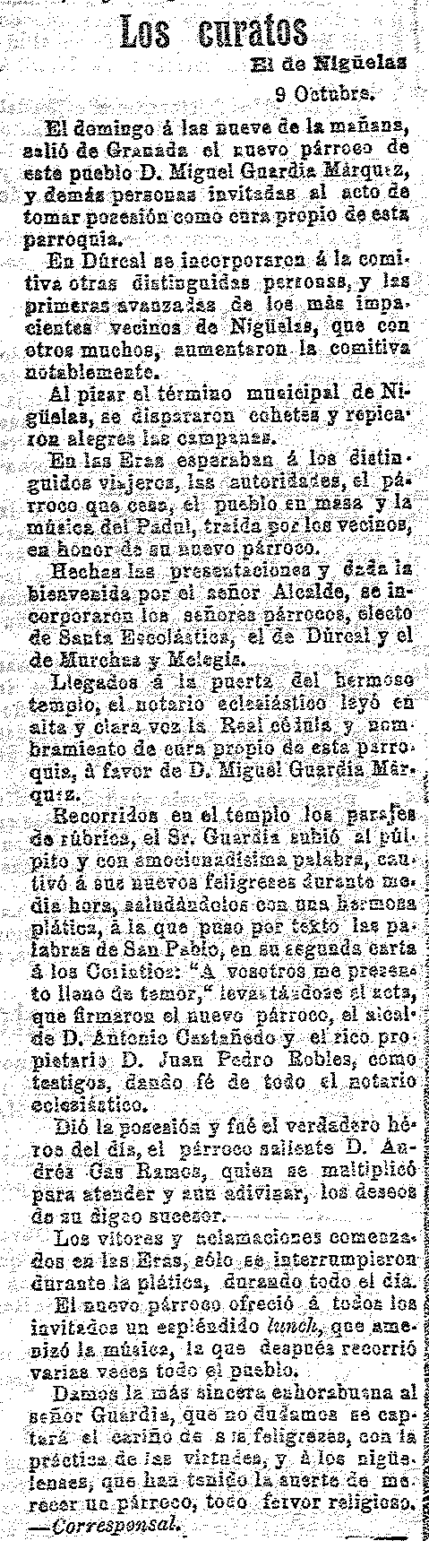 10 de octubre de 1911. Nuevo cura de Nigüelas,