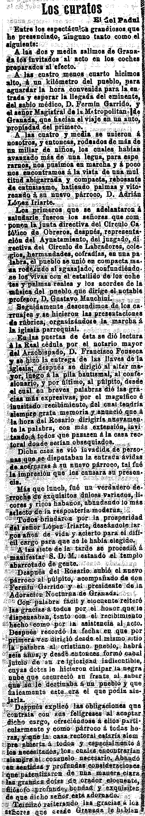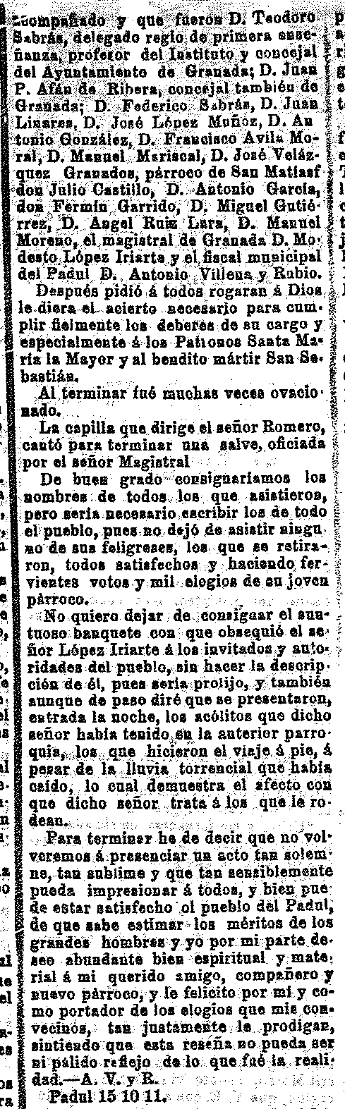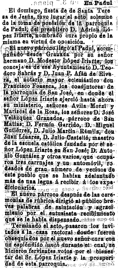 21 de octubre de 1911. Nuevo párroco del Padul