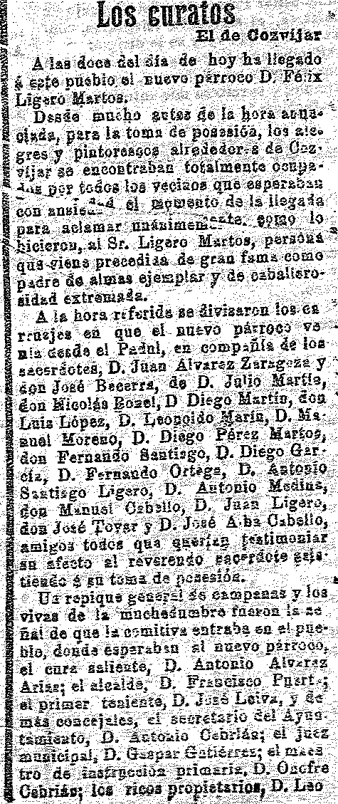 22 de octubre de 1911. Nuevo párroco de Cozvíjar