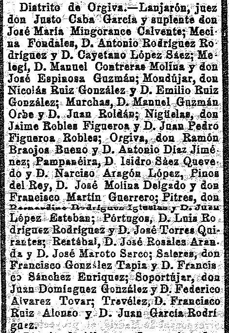 25 de octubre de 1911. Jueces municipales del Valle de Lecrín