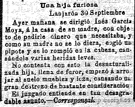5 de octubre de 1911. Una hija furiosa contra su madre en