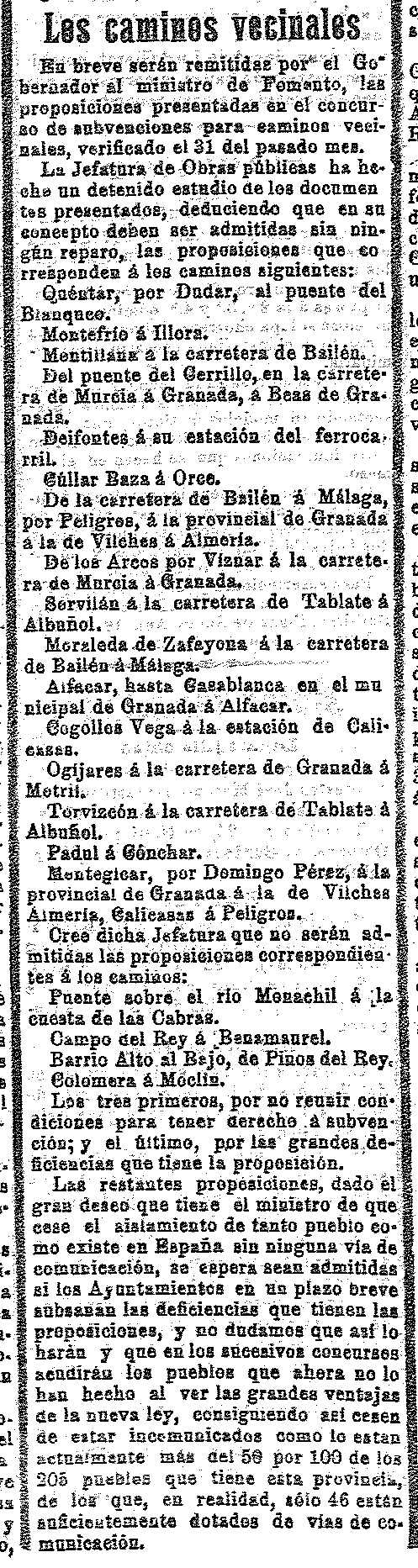 14 de septiembre de 1911. Caminos vecinales de la