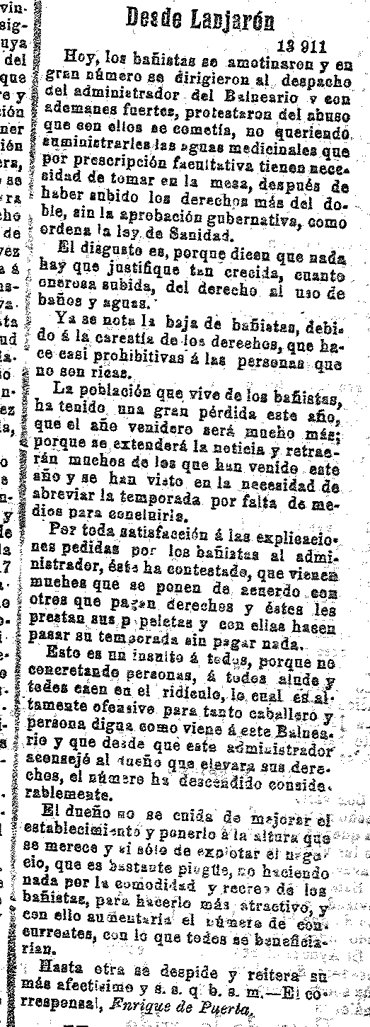 8 de septiembre de 1911. Accidente en Lanjarón