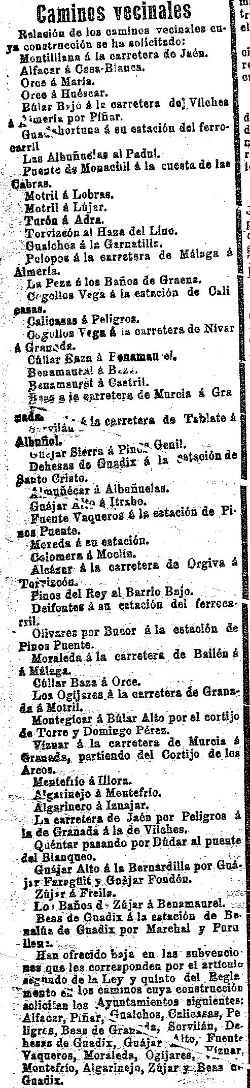 provincia, en el Valle: Padul a Cónchar. Barrio Alto al Bajo de Pinos del Rey
