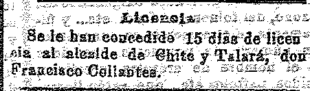 3 de septiembre de 1911. Licencia al alcalde de Chite y