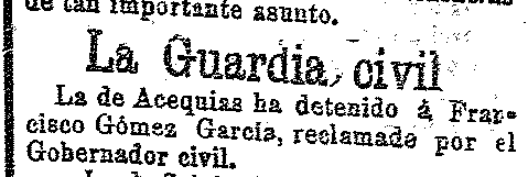 21 de agosto de 1912. Detención en Acequias por la Guardia