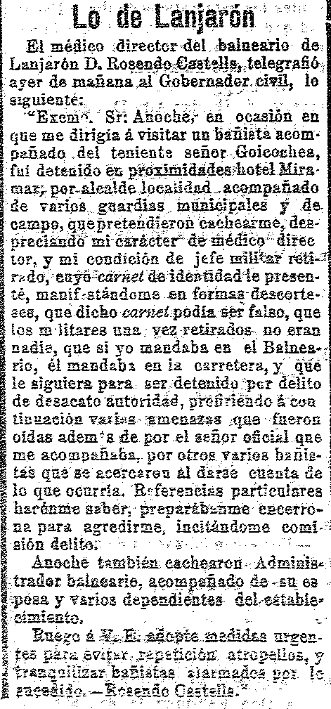 10 de agosto de 1912. Detención en Lanjarón