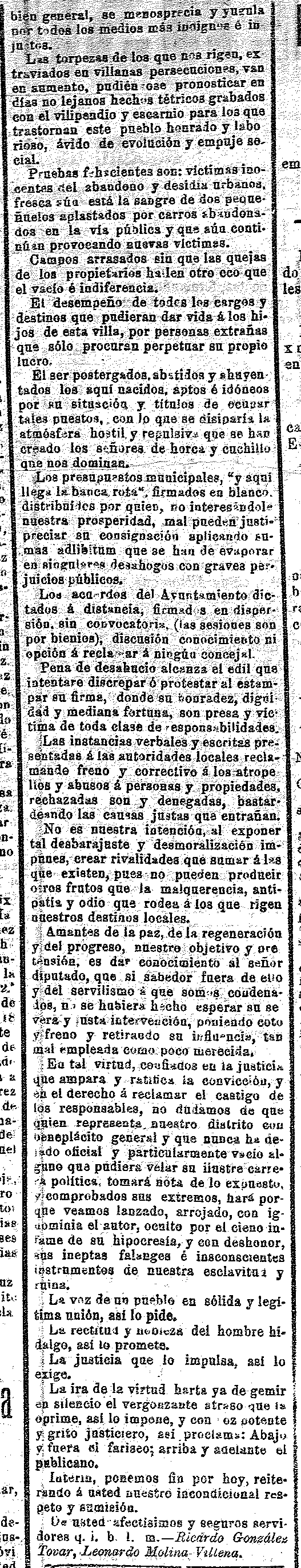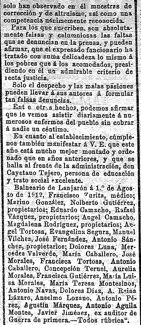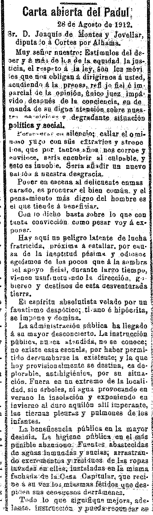 31 de agosto de 1912. Carta abierta del Padul donde hay