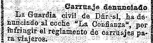 6 de agosto de 1912. Denuncian al coche de la empresa "La