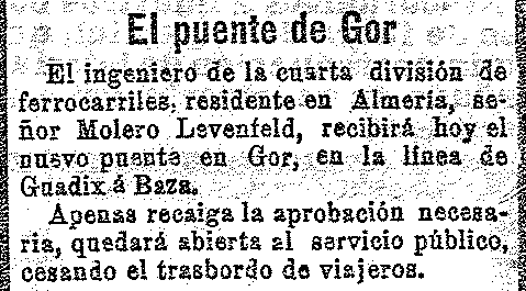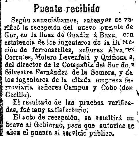 13 de diciembre de 1912. Se recibió el nuevo puente de Gor
