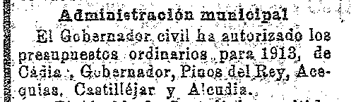 26 de diciembre de 1912. Presupuestos de Pinos del rey y