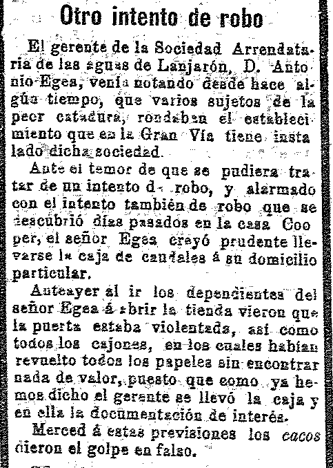 31 de diciembre de 1912. Robo en las oficinas de Aguas de