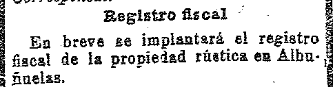5 de diciembre de 1912. Registro fiscal en Albuñuelas