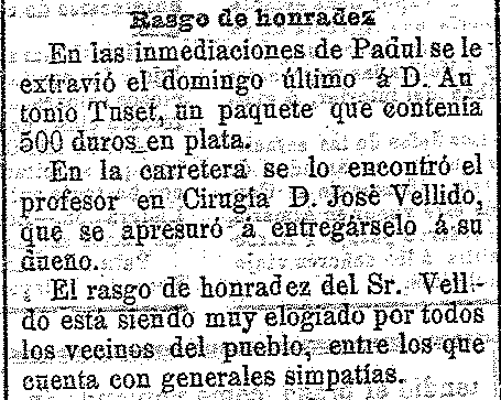 13 de marzo de 1912. Devuelven una cartera de 500 duros en el