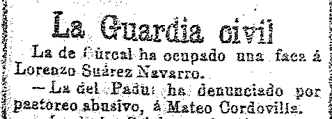 25 de octubre de 1912. Ocupación de una faca en Dúrcal y