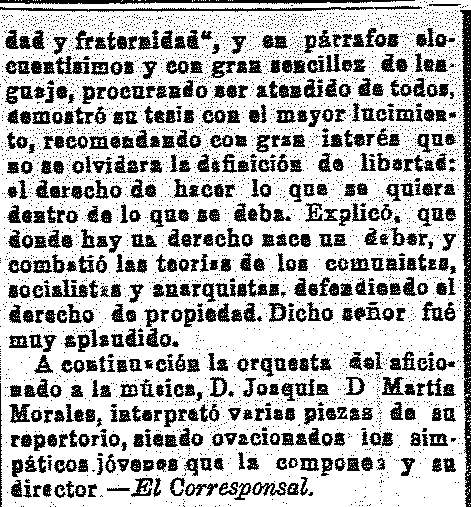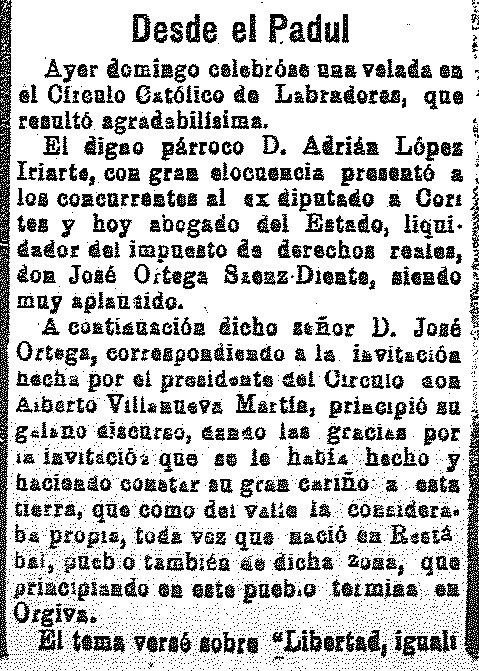 13 de agosto de 1913. Velada en el Círculo Católico del Padul