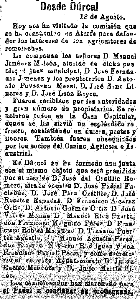 agricultores e la remolacha ha visitado Dúrcal siendo alcalde D. José del
