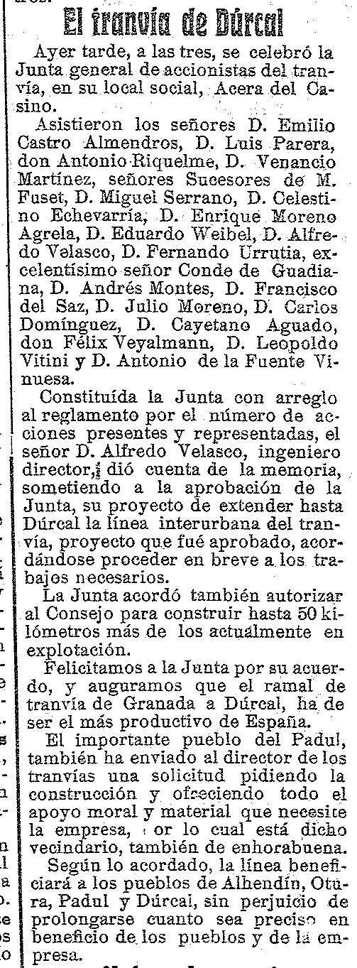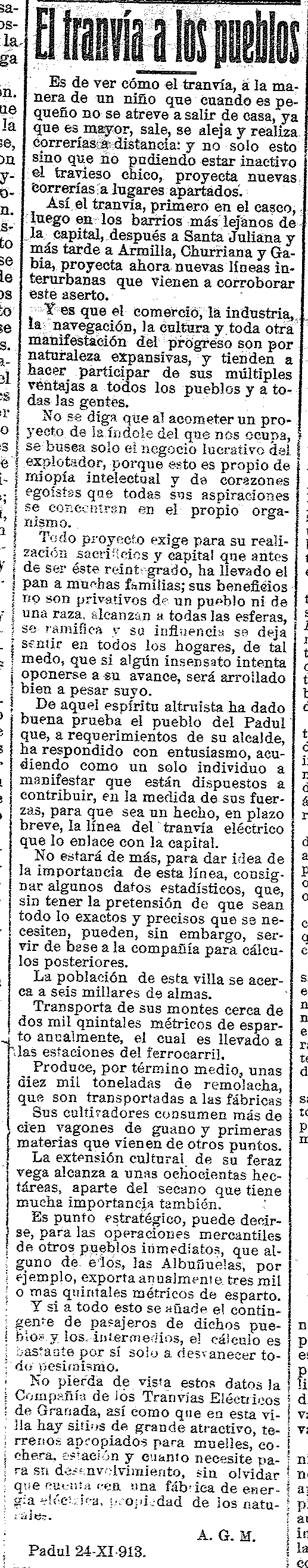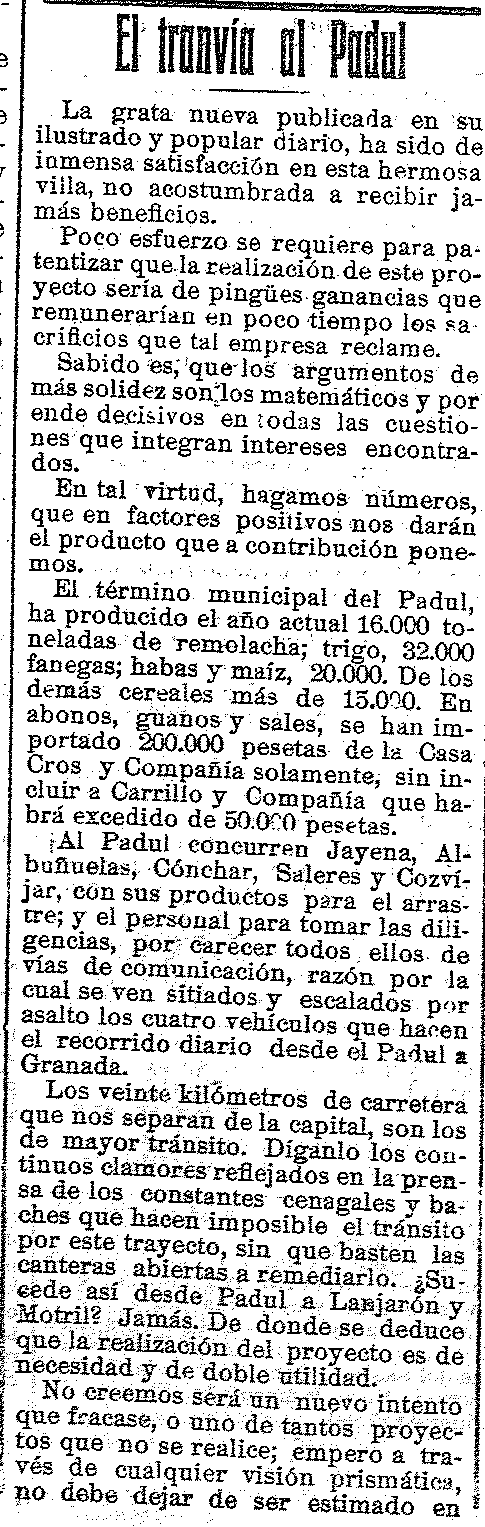 28 de noviembre de 1913. El Tranvía al Padul. Argumentos