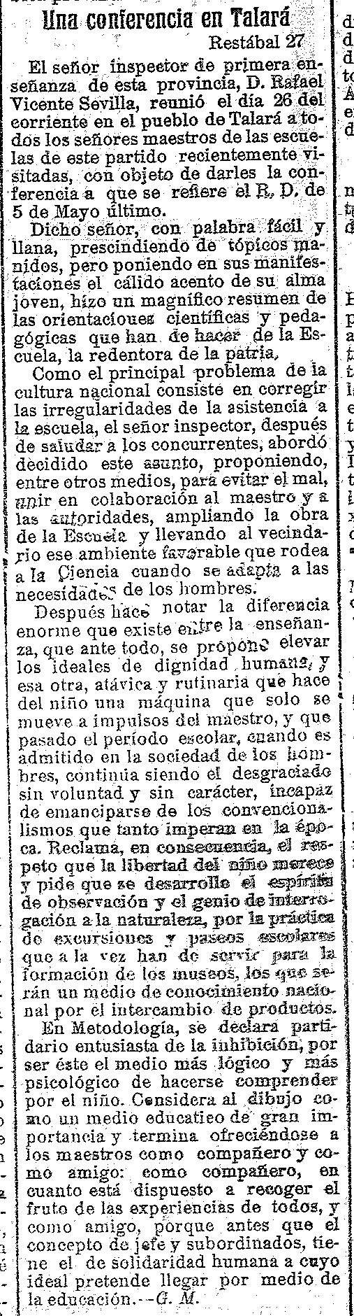 29 de noviembre de 1913. Una conferencia en Talará donde el