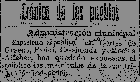 6 de noviembre de 1913. Contribución industrial de Padul