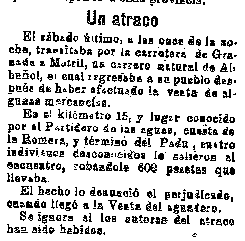 11 de septiembre de 1913. Un atraco a un carrero en el