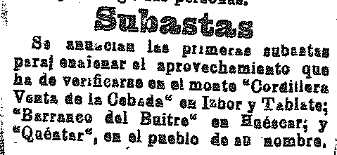 14 de septiembre de 1913. Subasta de montes de Ízbor y