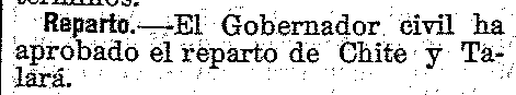 27 de septiembre de 1913. Aprobado el reparto de Chite y