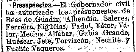 28 de enero de 1914. Presupuestos de Saleres, Nigüelas y