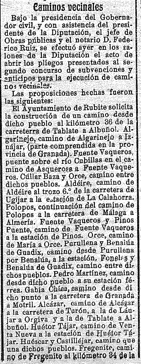 26 de mayo de 1914. Subvenciones para Caminos vecinales de la