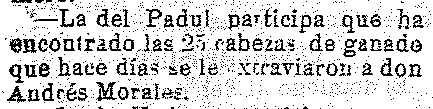 28 de mayo de 1914. Encuentran cabezas de Ganado perdidas en